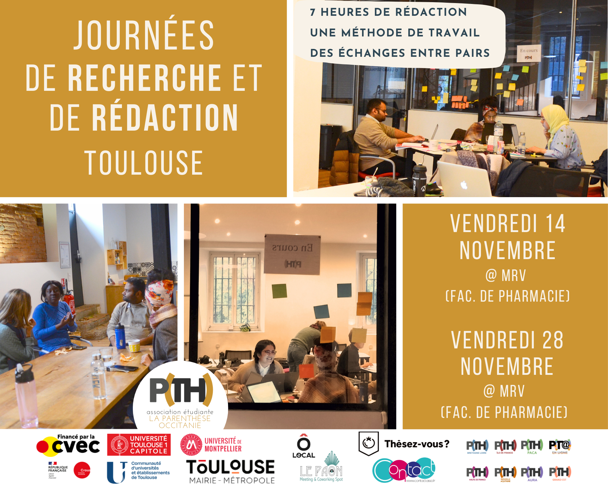 le 14 novembre à la MRV: https://www.helloasso.com/associations/la-parenthese-occitanie/evenements/101e-journee-de-redaction-a-toulouse